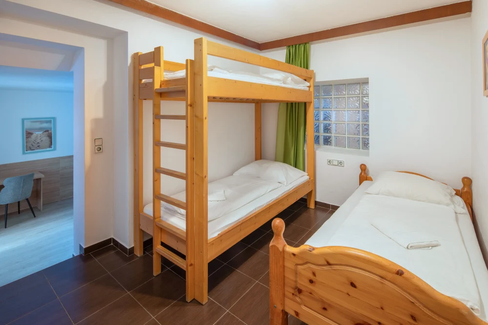 Kényelmes, két légterű Family Comfort szobánk lehetőséget ad az elvonulásra, és a közös családi kikapcsolódásra egyaránt. A 32 m² alapterületű szobából 4 db található szállodánkban, melyből 2 db 4 fős, 1 db 5 fős és 1 db 6 fős szoba.